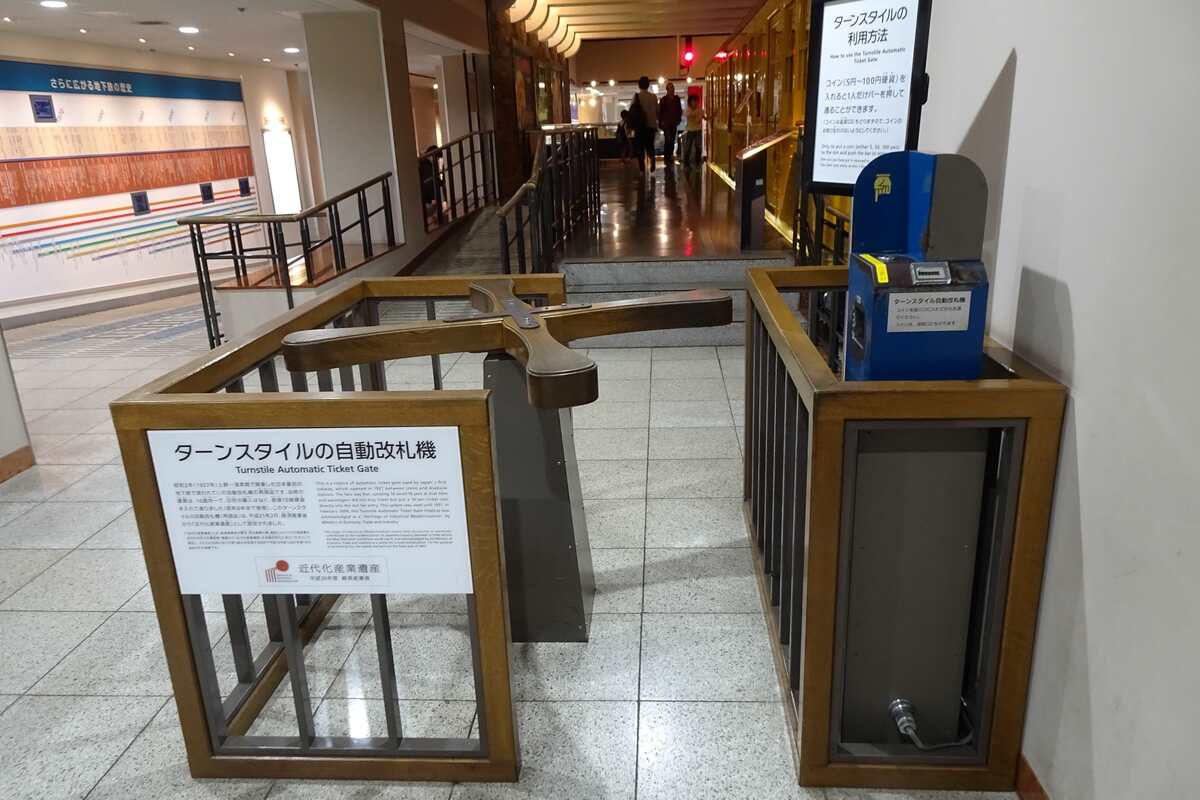 その銀座線の車両への導線に、昔の改札機がありました。