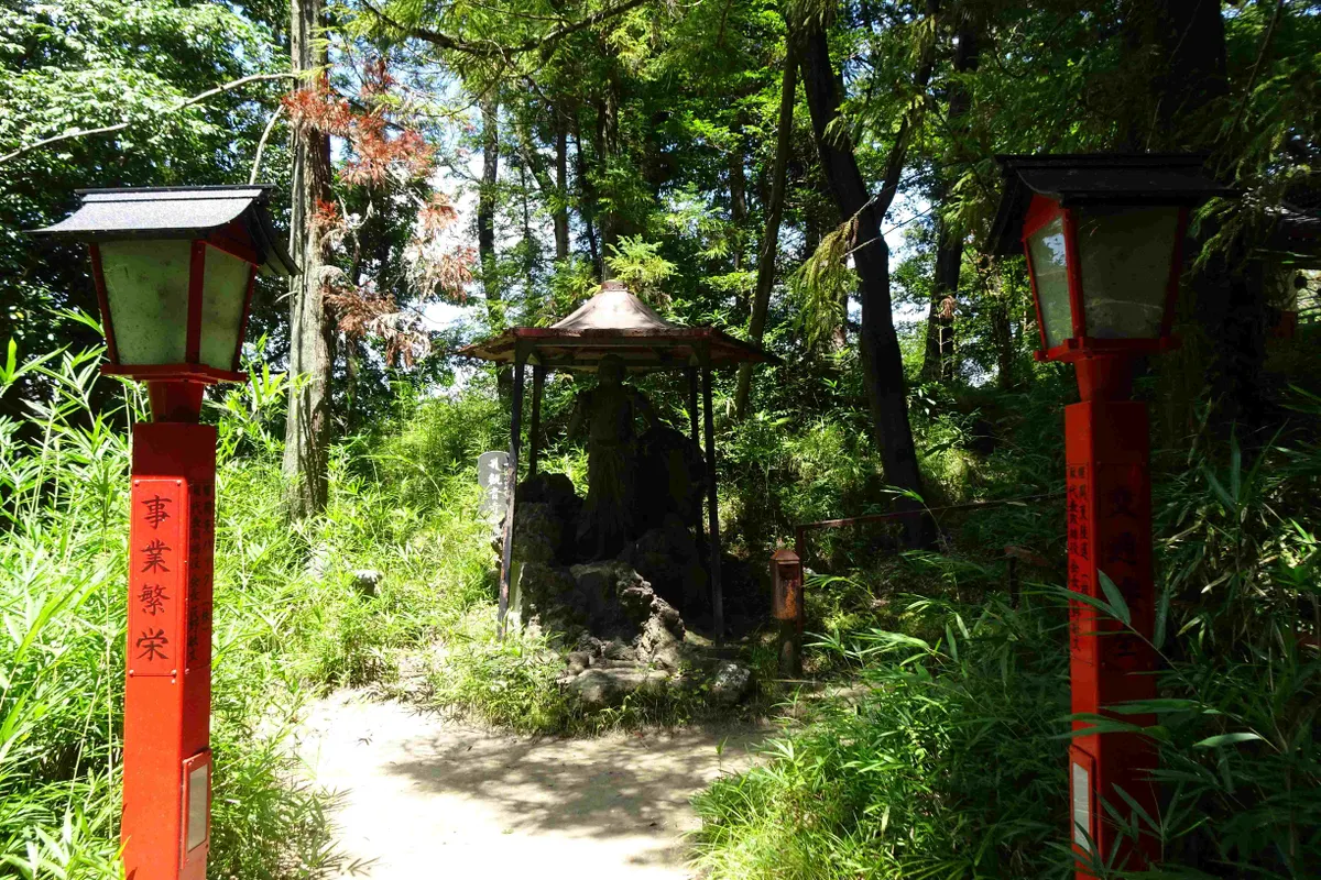 こちらは参道の途中にある、斎藤実盛という武将の像で、平家物語では重要な役回りを担った武将です。