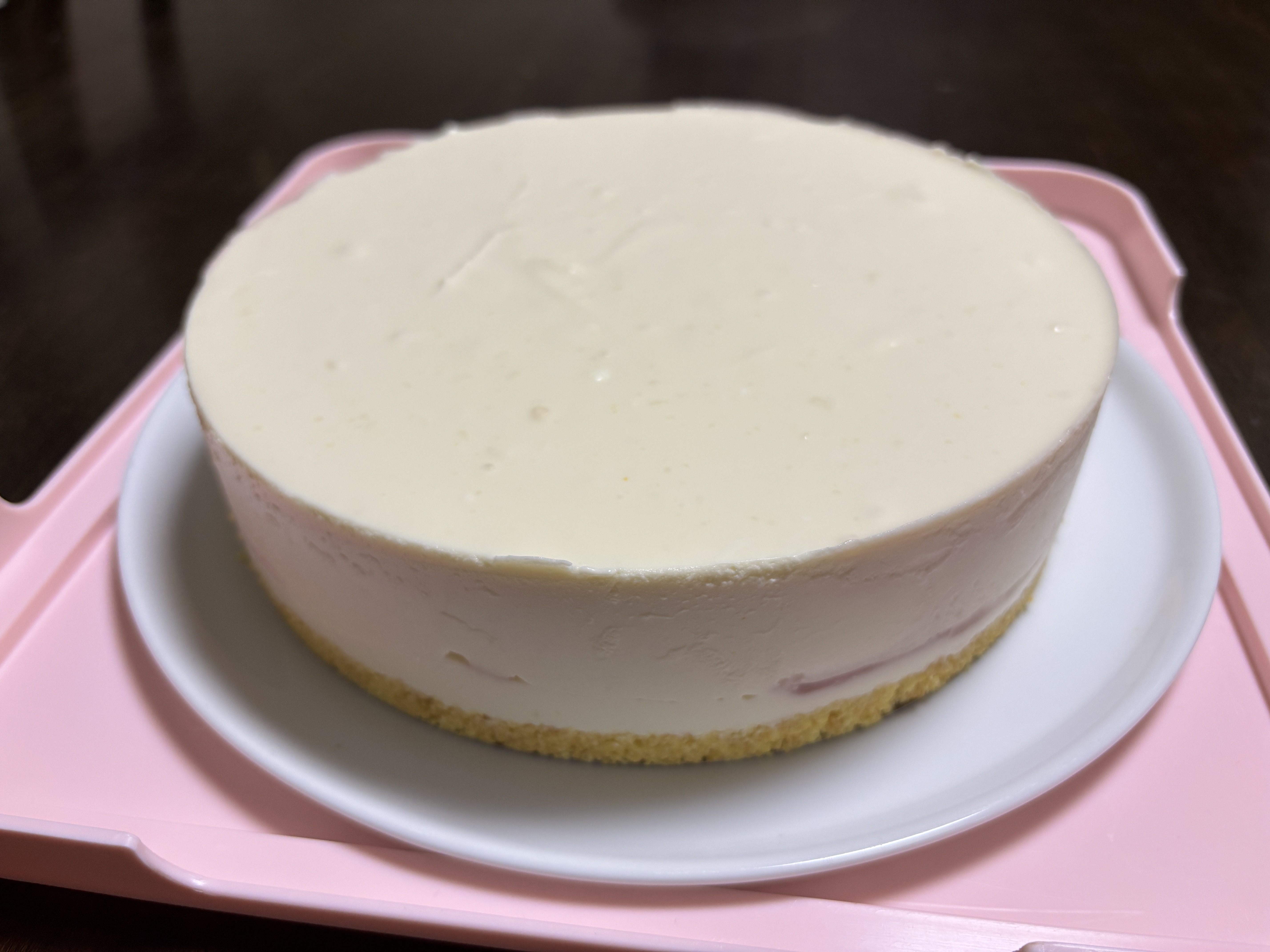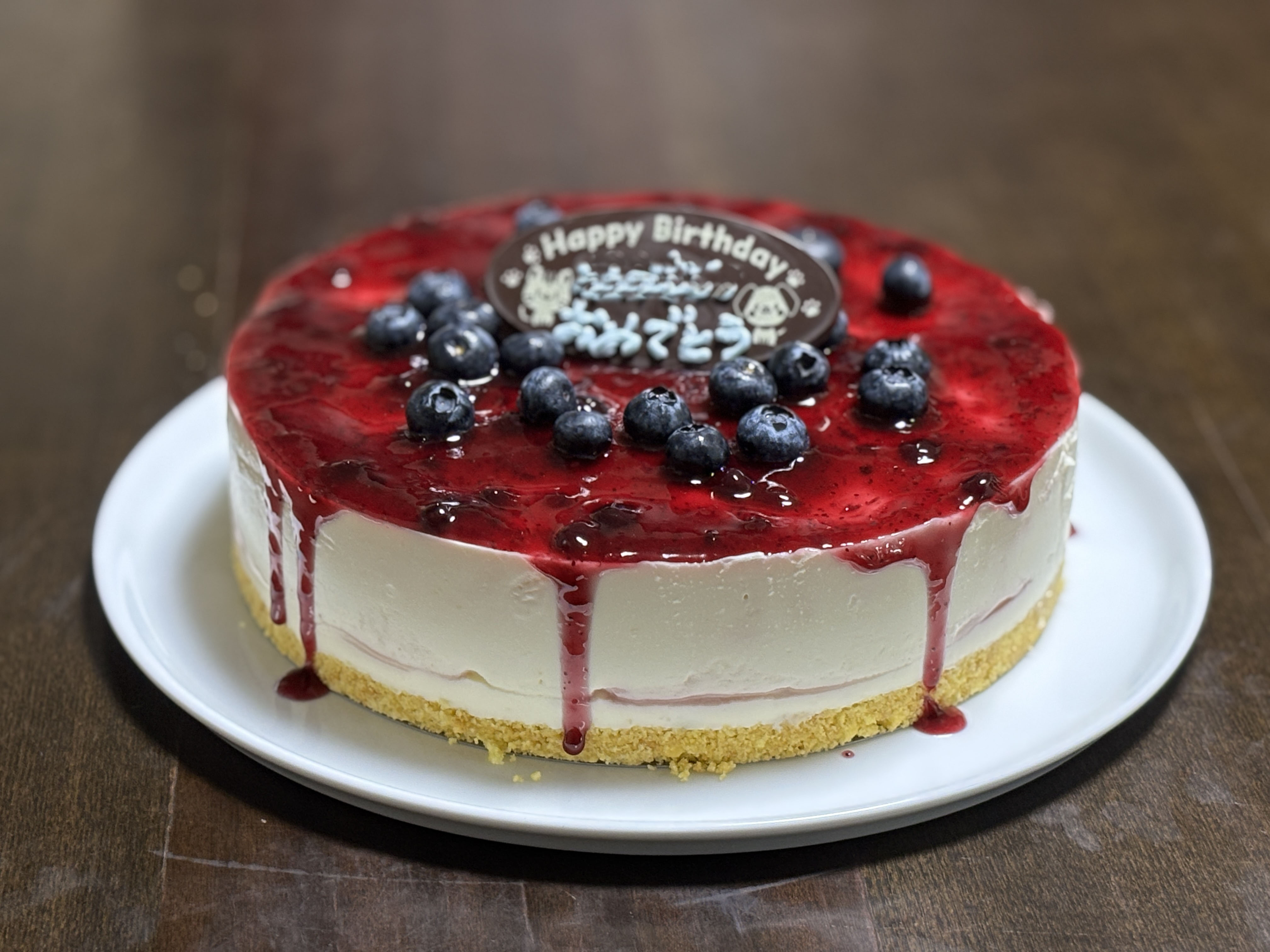 アイキャッチはダンナさんのバースディ・レアチーズケーキです。