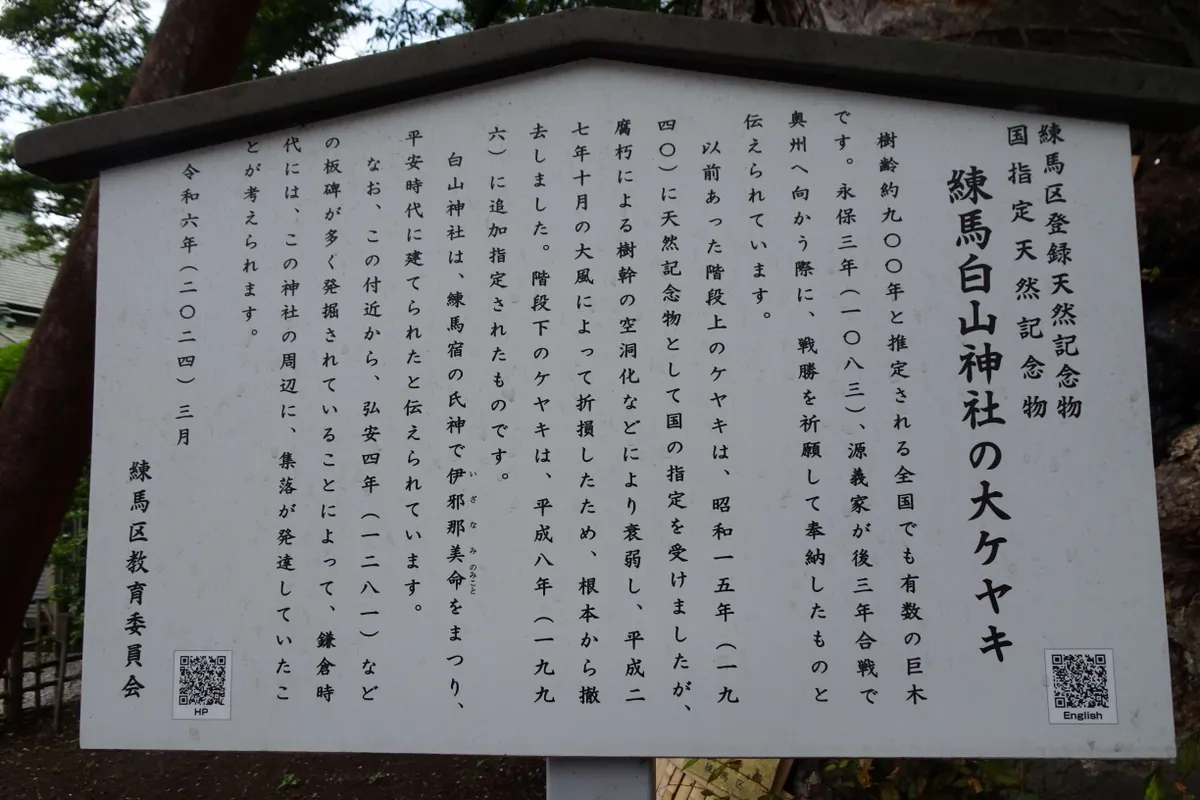 一の鳥居をくぐってすぐに、とても大きなケヤキの木があり、国の天然記念物です。