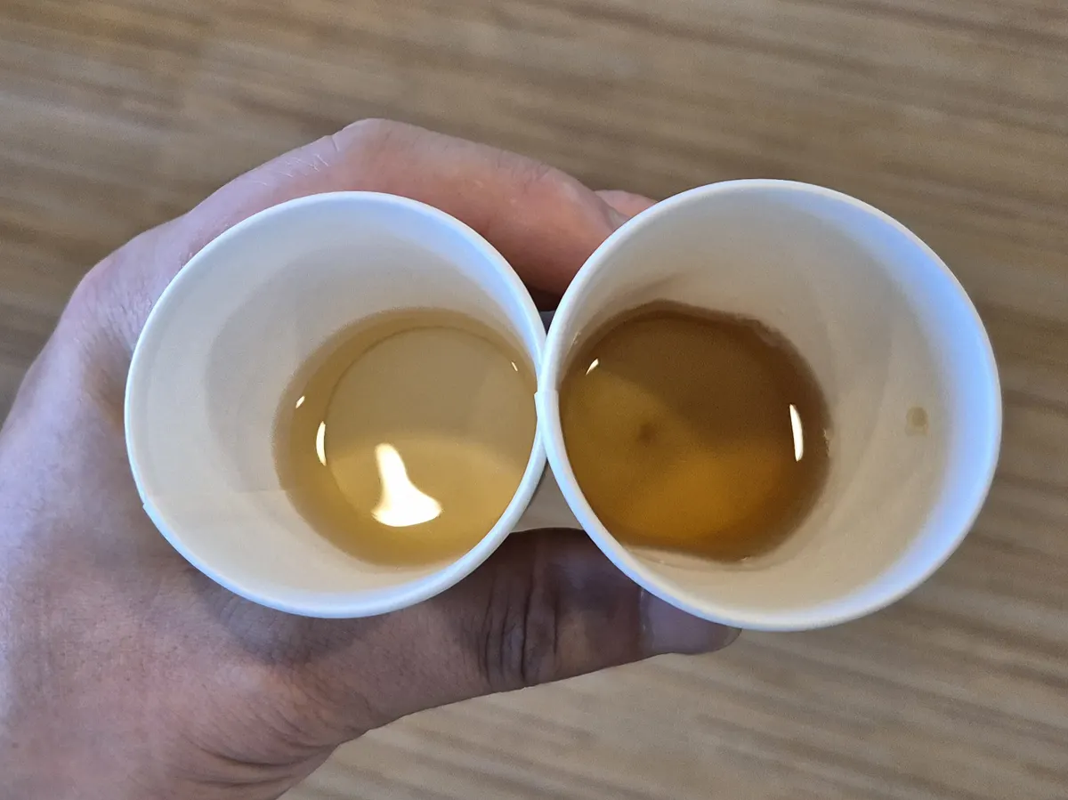 ↑↑🦒ならではの麦汁の試飲体験。一番搾り麦汁と二番搾り麦汁の飲み比べが出来ます。↓↓