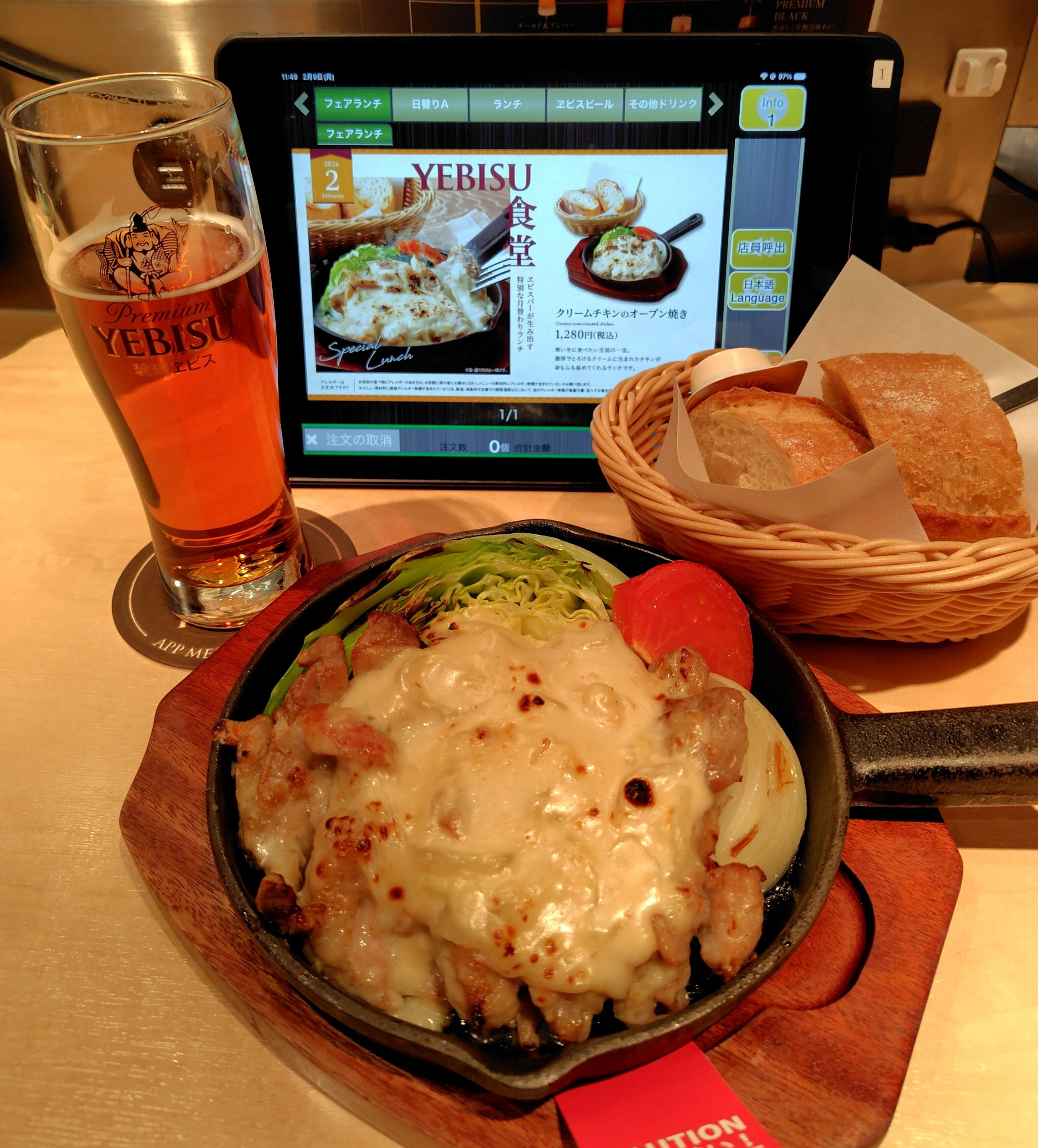 YEBISUBAR グランスタ八重北店、今月5日に食して「濃厚でなく焼きもなく大変残念な料理、もう二度とオーダーしないと」6日の朝に投稿したフェアランチ「クリームチキンのオーブン焼き」🍴