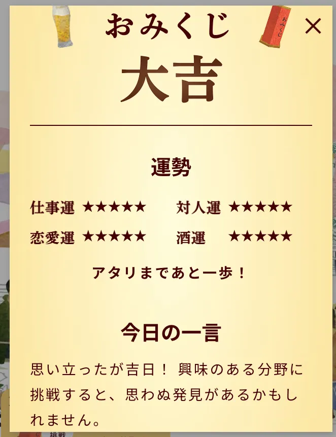 大吉でしたが、今回も「あと一歩」。その一歩が2,000メートルくらいないとアタリに届かない気がするので、たぶん人類に当選者は出ません 嘘