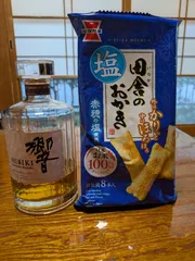 他社製品ですが、乾杯🍻今晩のオツマミは「田舎のおかき」、塩味がハイボールにピッタリです😊今度はビールでも試したいです😊