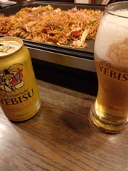 焼きそばでYEBISUを 焼きそばです。YEBISUです。どちらも旨い!