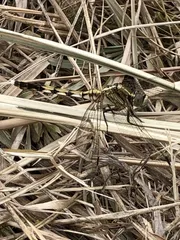 トンボ 早朝よりの草刈りでくたびれ休憩中に約15cm位そばに飛来してきました