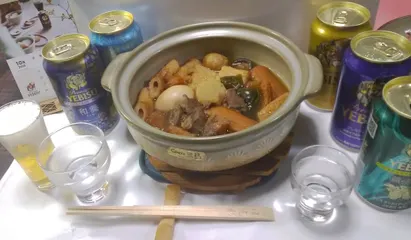 おでんと言えば・・・? おでんと言えば・・・?急に寒くなったので今日はおでんです。おでんと言えば日本酒と来ますがビールも捨て難い!そこでどれが一番合うか、確かめてみる事に。(答は・・全部旨い! しいて言えば・・・日本酒?)