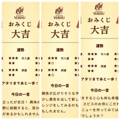 【本日の御神籤】 YEBISU BEER TOWN…大吉👍 YEBISU BARアプリ…中吉☹️ CLUB・LIONアプリ…ハズレ😢 TOWN籤は安定しています👍 ライオンガチャは、皆さんに追いつけず😣 ヱビス籤は貴重な中吉ですが、84マイルが欲しいのでありますよ😮💨 残り3日間、どうなるか🤔