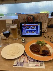ジョナサン日替わりランチ🤗 先にハッピーアワービール🍺が来ると泡🫧が消えてしまいますね😱でもビール表面はカバーされています😅