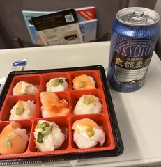 京都旅行の帰り1日2万歩、歩いて疲れた❗️なんと言っても、電車で飲むビールは美味い😋!お弁当の味も倍増‼️