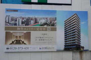 三島神社 三ノ輪から昭和通りを南に下がったところに、三島神社という神社があると行ってみたら、マンションの建築現場でした。でもそこには、こんな案内がありました。マンションの建築現場の西の端に、仮の本殿がありました。花手水の代わりでしょうか。アイキャッチ画像のマンションの完成予想図を見ると、奥に社殿ぽいものが見え