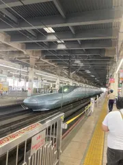 一年ちょっと前に大宮駅で スマホの写真を整理してて、見つけました。出張で山形に向かう途中、大宮駅で新幹線の乗り換えで待ち合わせのタイミングで、偶然見かけた新幹線の試験車両ALFA-Xです。「なんか長い」と思いながら写真に残して、あとからALFA-Xっていう車両ということを知りました。走り出すところまで見届けてましたが、カッコ