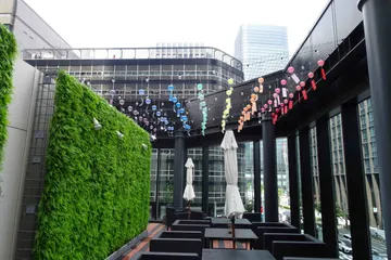 ここ滋賀テラス 実はこの日はアンテナショップを缶ビールを探して回っていたのですが、「ここ滋賀テラス」の屋上に行ってみたら、色付きのガラスの風鈴がいい感じで吊り下げられていました。8月22日金曜分の投稿はまだ続きますが、それは明日に。
