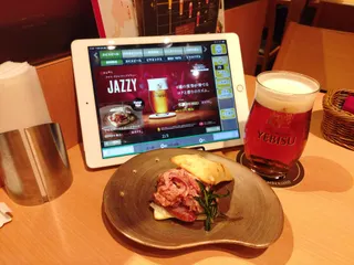 JAZZYと 期間限定のJAZZYとおすすめの小さなローストポーク温かいパンとひんやりしたローストポークで口にした時びっくりしましたが、美味しくいただきました。@なんばCITY