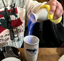 ふぐヒレ酒! トラふぐ刺しとふぐヒレ酒!今年もやっと涼しく(?)なり、河豚の季節到来です。さっそくトラふぐコースを堪能!ふぐ刺しとヒレ酒で今シーズンの幕開けです。年寄りの火遊び(?)もタップリご覧有れ!
