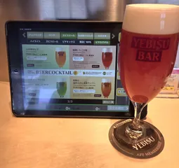 ヱビスバー今月からの新ビヤカクテル🍺🍸福岡あまおうシロップ+紅茶+ヱビスビール🍓🍺いちごジュースですね😅甘いので追いヱビスビールを注文して、3度注ぎ的にしました😅