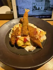ミックスフライオムライス ちょっと前ですが食べました😋写真とちょっと違って元気が無い😅