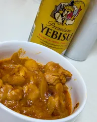 マッサマンカレーと。 時々無性に食べたくなる甘めのマッサマンカレー。昨晩から急に寒くなった気がするけど、昼間はまだ気温が高め。冷えたヱビスが美味しいです。