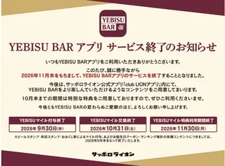 YEBISU BAR アプリ終了のアナウンスは突然にYEBISU BAR カードからはじまりあまり使う機会なくアプリへ移行たまにツマミや半額券に使う程度でしたが終わるとなれば最終はヱビス1ケースで締め括りましょうか😮💨終了までは今暫く楽しませて頂きましょうか🤔銀座LIONアプリだけになるのもチョッ