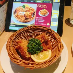 ヱビス様からのクリスマスプレゼント第2弾 は唐揚げ半額。フツウのヱビバは¥680(むね肉)、新宿店は¥700(もも肉)の半額になります。新宿店限定メニューのアリ・ディ・ポロの2色アッロスティーレも悩みましたが、二人用を想定しているようで、ちと多いかなと唐揚げにしました。ライオン唐揚げは安定の美味しさでした。例年は少ない予約客のクリスマスイブ