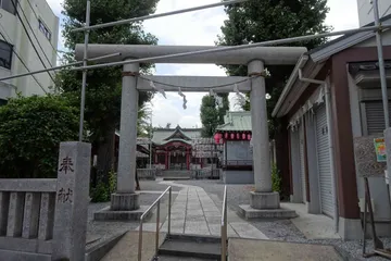 葛飾氷川神社 8月16日土曜の続きです。正王寺の先に、葛飾氷川神社がありました。手水舎は朱い柱です。こちらは神楽殿です。拝殿です。末社の八王子神社です。拝殿と本殿を斜めから撮りました。