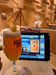 ヱビスバー難波店 娘と関西万博に行くのに新大阪で合流昼ご飯をティンダイフォン ルクア大阪で食べたのですがヱビスビールはメニューに無し気を取り直し、夕方 エビスバー難波店で長野白桃アンバー、和奏を美味しい料理と頂きました