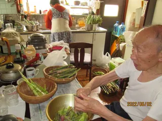 86歳今年も山菜採り元気です! 元銀行員の親父。86歳の今も大好きな山菜採りに岩木山に行っています。親父は山菜の師匠です。山菜の天ぷらとエビスの組み合わせをぜひ!!