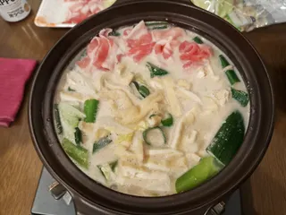 今日は夫チョイスの夕食🥢(月曜日、木曜日、金曜日は夫の仕事が何時に終わるかハッキリしないので基本的に夫チョイスの夕食となっております🙇♀️)鍋でした🍲初めての豆乳鍋🐮ちなみに、市販の鍋つゆ使用です🫡具材は豚バラ、長葱、白菜、刻み揚げ🐽🥬🟨私は食べ進めているうちに丁度良い味に感じ始めましたが、夫は物