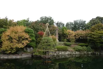 さて、次は本筋の目白庭園です。この日はアオサギがいて、紅葉の下でたたずんでいました。緑一色から、木々の葉が色々な色に変化していきます。 赤く紅葉した木もありました。石畳は、木から散った花びらが目地を埋めています。柿はしっかり熟しています。茶の花です。これからまだまだ咲きそうです。ムラサキシ