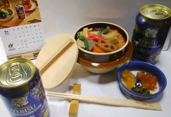ビール工場見学のあとのYEBISU BAR アサヒビール工場見学のあとに見学隊メンバー5人とYEBISU BARぶらっと京橋店へ。人気コースの120分ビール全種飲み放題付「ラッキーヱビスコース」を頂きました。今が旬の美人画ポスター。一杯目はやはりこれですね。和奏。前菜3点盛オードブル。二杯目は琥珀ヱビスプレミアムアンバー。海老とカッテージチー