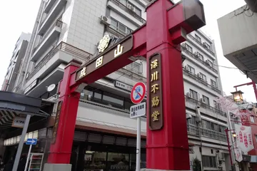 渋谷でお昼にラーメンを食べた後、今度は門前仲町に行き、まずは千葉の成田山新勝寺の別院である深川不動堂に寄りました。本堂は震災で焼けたため、戦後の再建ですが、本堂は再々建し、前の建物は旧本堂で、左横の建物が現本堂です。横の建物の現本堂では護摩祈祷をやっていて、撮影禁止だったので写真はありませんが、護摩