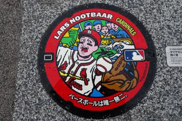 ヌートバーのMLBマンホール ヌートバーは日本に住んでいないので、MLBマンホールは箭弓稲荷神社の境内にありました。