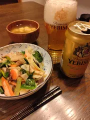 中華炒め物 ボジョレーヌーボーよりもYEBISUです。