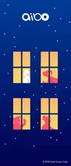 ソニーの壁紙 窓の中の雪ダルマと赤い犬。