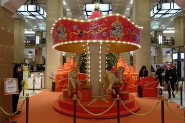 日本橋高島屋のクリスマス飾りの追加 先々週日曜の写真とごっちゃになって、先々週土曜の投稿し忘れです。この間ご紹介したクリスマスツリーの前に、小さなメリーゴーラウンドが設置されていて、子供たちが嬉々として乘っていました。写真はちょうど乗る人が途切れたタイミングの写真です。