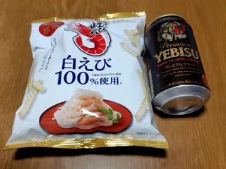 今日は 今日は立春白い食べ物を食べるそう なので白えびのかっぱえびせんとヱビス プレミアムブラックで🍺