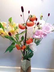 季節のお花 まだまだ暑いのでお花が持ちません。花を見ると和みます😊アルストロメリア 未来への憧れトルコキキョウ 優美ワレモコウ 感謝ソラナムパンプキン コロコロしてかわいいです。