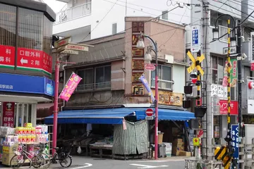 江古田駅近辺の風情ある建物 アイキャッチ画像は八百屋です。下はいろんな店が入った雑居ビルです。今や絶滅危惧種の街の本屋さんです。こちらも今となっては珍しい、タバコ屋らしいタバコ屋さんです。そして材木屋です。この日はお休みでしたが、利久庵という名前からは、たぶん和菓子屋か蕎麦屋です。隣の不動産屋さんの「求ム物件」といい、そこはか