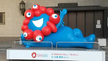 大阪市役所でミャクミャク発見❗ ミャクミャクです😀背中はこんな感じです😀