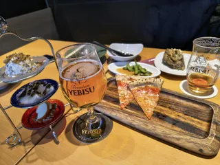 発ヱビスバー🥂 旦那さんはいざ知らず、私にとって発ヱビスバーなので投稿しました😢場所はさいたま新都心です。クリスマスマーケットでオーナメントを見て、その後連れていってもらいました。私は「和奏」旦那さんは「JAZZY」と「琥珀ヱビスプレミアムアンバー」、おつまみとして、福井フェアの「九頭竜まいたけ」「永平寺御用達ごま