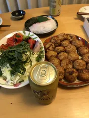 久しぶりのたこ焼き ねぎ塩。YEBISUではなかった。残念。おつまみは厚揚げを注文
