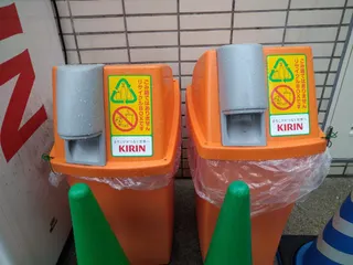 なぜそこにカラーコーンを カラーコーンをその位置に置いたら、ペットボトル捨てにくくない?