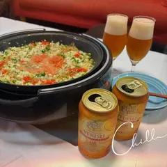 乾杯 ホットプレートもんじゃとエビスで乾杯