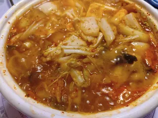 韓国料理 三ノ宮の韓国の家庭料理を食べに行きました♪ この写真のお鍋はナッコプセです。タコとホルモンと野菜いっぱいなお鍋でした。あとフライドチキンヤンニョムチキンのセット一羽キンパチヂミキムチ豚のポッサムお願いしました。残念ながらビールはサッポロではなかったのです。