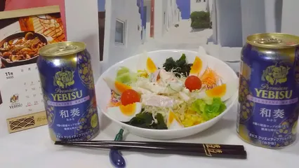 和奏とサラダのブランチ!今日はコーヒー抜きで和奏とサラダだけ。一応昼飲みになるのかナ?≪いつもの事じゃなぁ~い? (影の声)≫