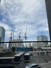 東京トーチ😱 東京駅日本橋口の風景は、3年後、一変します。60階300mのあべのハルカスを超え、62階390mの東京トーチが完成して、この青空が消えて進撃の巨人風の壁になります🙀スタバから定点観測するのも一興ですね😅