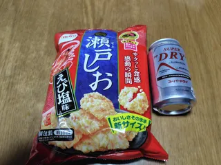 今日は 今日はスーパードライとライフ限定かっぱえびせんで😋