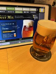 YEBISU BAR 上野店 今日は上野にてピアノリサイタル🥰、ショパンとリストでした。私の好きなスケルツォも曲目にあって、その音色にうるうる 。。胸が熱くなった後のYEBISU BARてす。はじめはプレミアムエール、二杯目はトワイライトエール、三杯目はエビスとプレミアムブラックのハーフです🍻