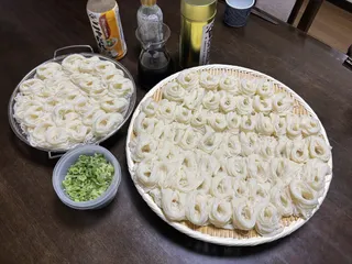 暴力的な素麺量 キャンプから帰って次の日のお昼です。三男の要請により、早速7人分の素麺出動。……作って気づく、あ、今日は一人居ない。じゃ6人分か、余るかな?と思っていたら、まさかの足 り な い …………。仕方なく追加で茹でましたが、もっと茹でても大丈夫だったご様子の方々が。因みにこれで三把です素麺は、日によって各