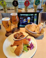 藍想う&澄深し🍺日替わりランチE🍴 昨日のYEBISU BAR エミオ石神井公園店🚃日替わりランチE (真鱈フライ&海老クリームフライ&牛肉オイスター煮)をパンで🍴😋藍想う🍺&澄深し🍺を飲み比べながら😆
